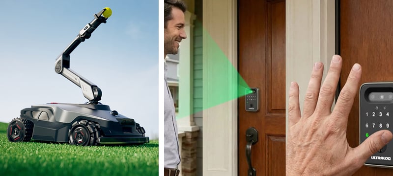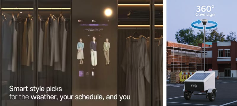 📸 From top left, photos courtesy of: NexLawn's Master X, Ultraloq Bolt Sense Smart Lock, Eoneom's HEYMIRROR, LG's CLOiD, Ring's Mobile Security Trailer and Lutron's new wood smart shades.