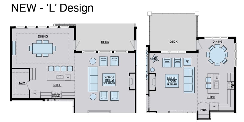 There's a lot to benefit from this open plan shift. From a design perspective, the L-shape gives homeowners and designers more to play with: