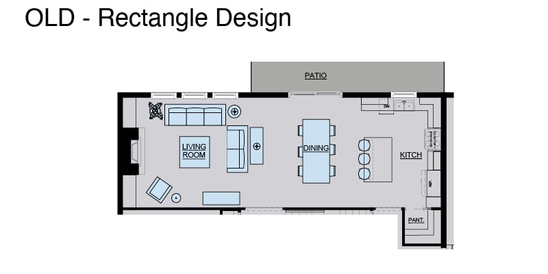 Alright, let's step back. That rectangle had a great purpose, encapsulating the trio of rooms into ONE open space. Now, picture your main living areas—kitchen, dining, and living—still open to one another, but arranged in an “L” configuration rather than a single straight shot. This subtle shift changes everything.