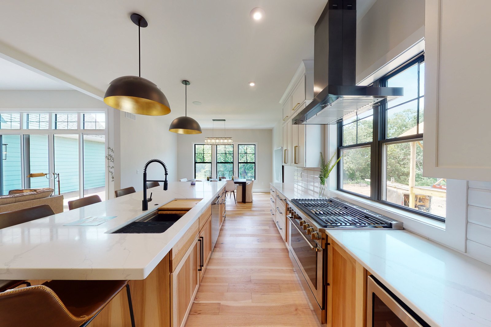 👉 The Kitchen Becomes the Social Anchor: This layout reinforces the kitchen as the modern home’s command center. It maintains sight lines to both rooms while giving the living and dining spaces a sense of boundary and privacy. During gatherings, it’s the hub where everyone gravitates—exactly as homeowners want today.