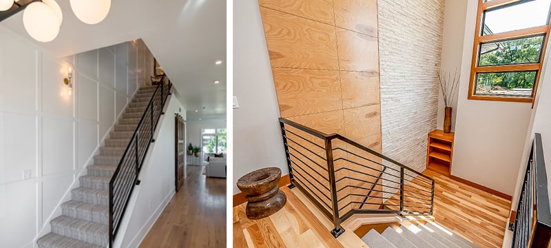 Yet many builders close off staircases with full walls to save a few thousand dollars in materials and labor. The result? A home that feels boxed-in and disconnected. Those walls cut off light, sightlines, and that natural sense of flow that makes a home feel open and alive.