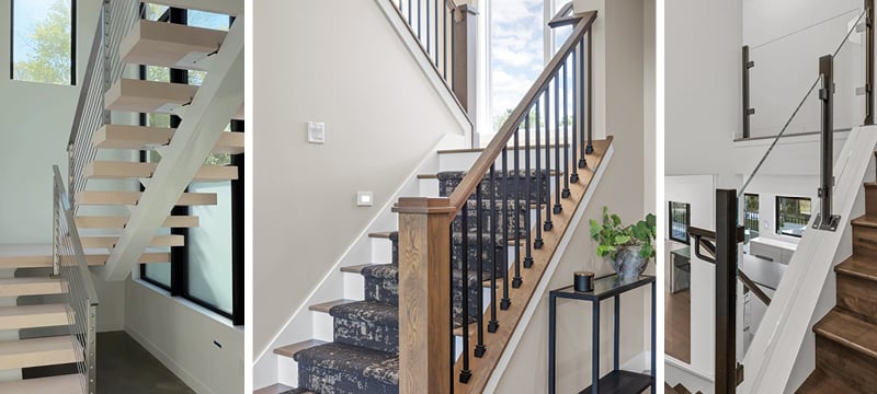 📸 Left: cable design (Bedrock Builders); 📸 Center: rod design (Frakes Construction); 📸 Right: glass design (Frakes Construction)