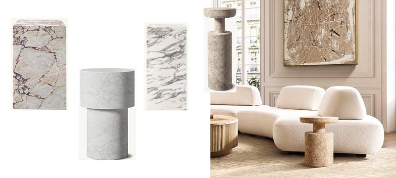 One of my favorite sources for cocktail table inspiration is Restoration Hardware. Their collections quietly trace the evolution of modern design—capturing everything from early 20th-century modernism to the sculptural boldness of postmodernism, and even the timeless geometry of the Greek plinth. Below are four design periods worth exploring, each with its own distinctive take on proportion, material, and attitude.