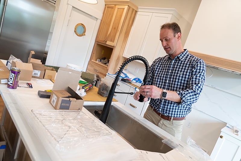 The island is the center hub, the "mission control," the heartbeat of the kitchen. When the sink lives here, the whole space starts working smarter. You prep, rinse, chop and toss without doing laps around the room. And because efficiency demands the dishwasher sit beside it, you naturally create a perfect triangle: sink → dishwasher on one side → trash on the other. That layout works, its ergonomic design disguised as convenience.