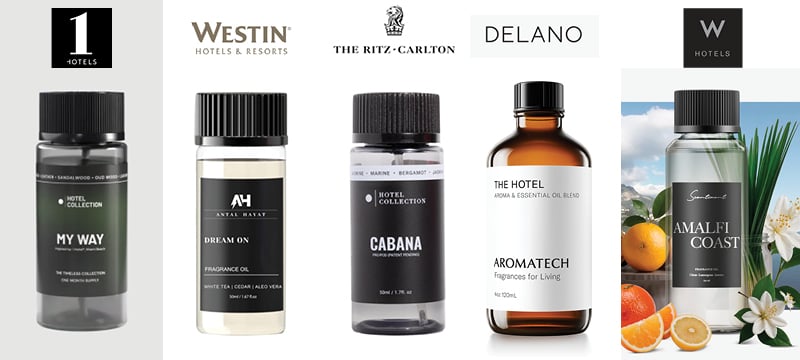 The Hotel (AromaTech) — a blend of rose, geranium, lavender with eucalyptus, fresh pine, lemon, orange, peach.