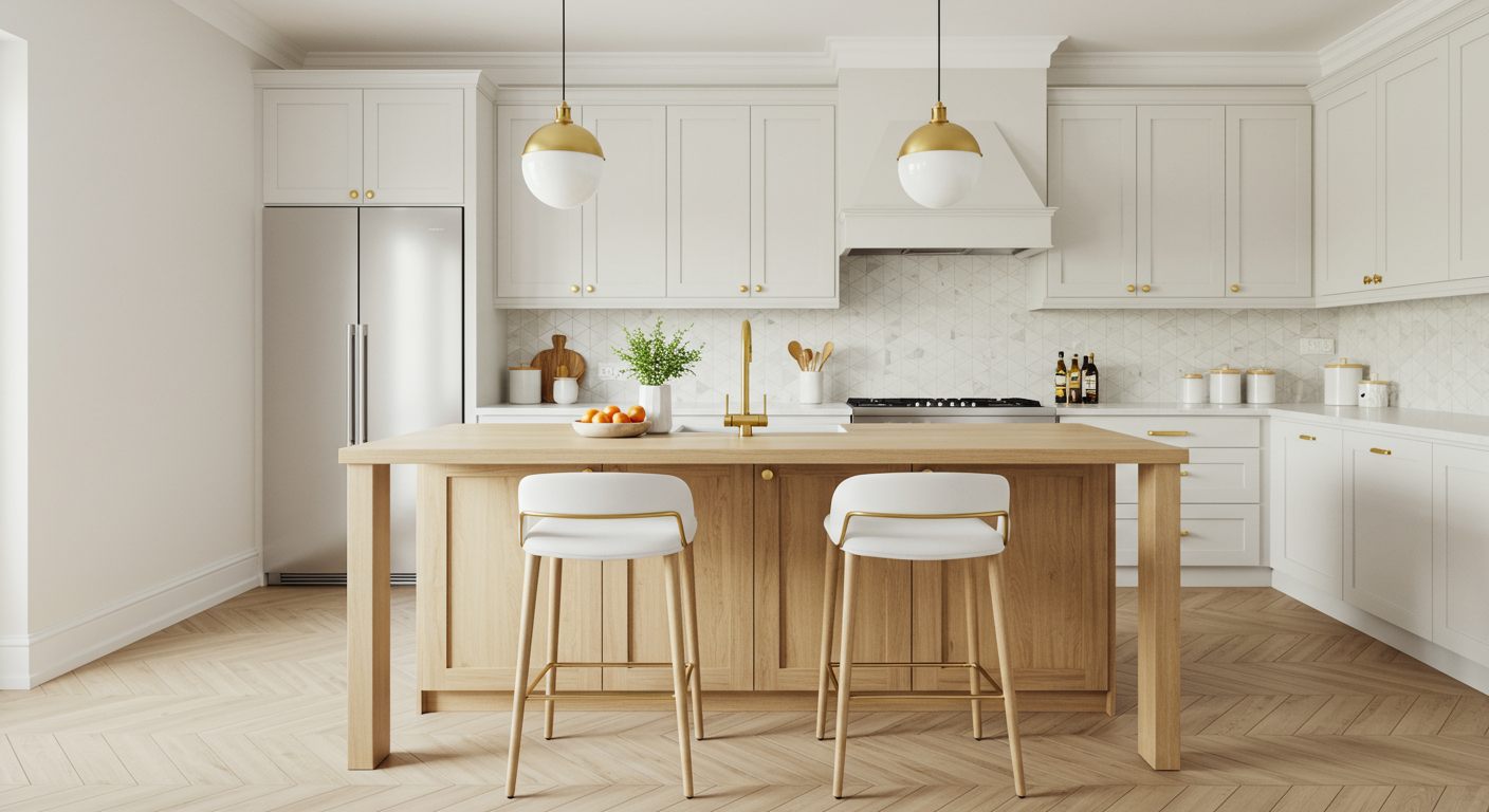 After decades of trying to remove brass, brass accents are returning. Though not in their polished state, brass fixtures such as matte finish and brushed gold have helped bring it back into kitchen designs. A key theme for design this year is to incorporate more contrast, and brass is able to achieve that by creating a pop with black or dark kitchen cabinets paired with brass or gold hardware.