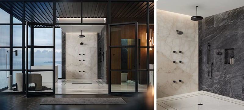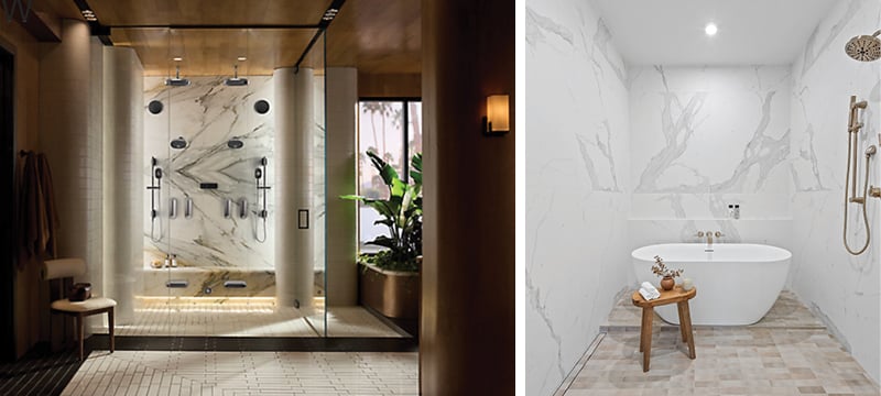 - Kohler – Flagship showrooms now feature slab shower backdrops as the new luxury standard.